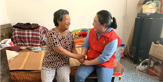 这是窑店街道“小瑶上门”的志愿者们为崔墩子家提供“温暖星期五”入户服务来了。
