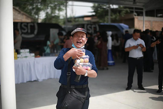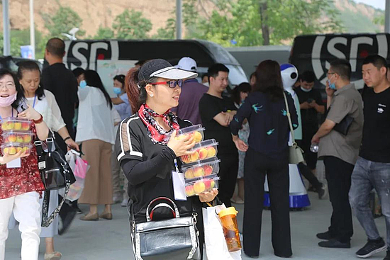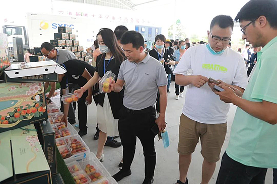 推介会现场,黄灿灿、红彤彤的杏果,引得到会人员纷纷驻足拍照品尝,美味的红杏引得大家连连点赞。