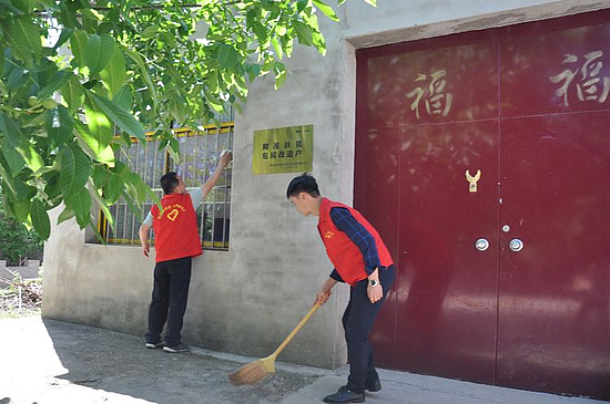 阳光明媚,天蓝树绿。跟着志愿者的脚步来到脱贫户王尚华家中,80多岁的高龄又一直多病的他却特别有精气神,知道志愿者们的来意后他连连拱手作揖:“太谢谢了,我自己马上好好收拾,不能再麻烦你们”。看着志愿者们热情坚持的打扫卫生,王尚华老人也忙前忙后帮着打下手。