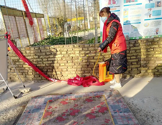 刘娟做疫情防控消毒