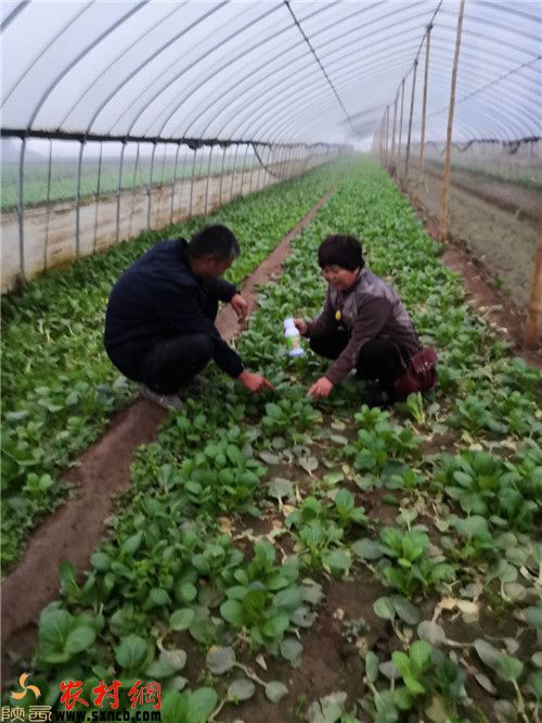 杨敏在王东大棚里指导如何用光碳禾肥
