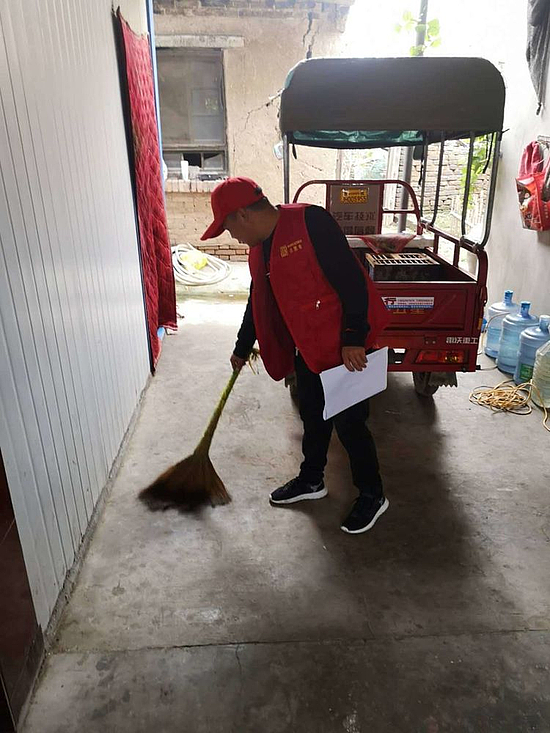 党员干部及志愿者们与贫困户零距离交流,同他们拉家常,问冷暖。并为他们打扫卫生,整理户容户貌。