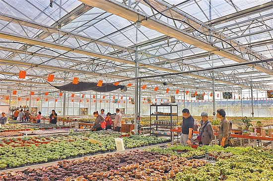 沣东八兴滩多肉产业园里,游客正在观赏多肉植物。 本栏照片均为资料照片
