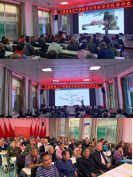 9月10日上午,值此中秋佳节来临之际,空港新城太平镇举办脱贫攻坚秋季农技培训会,为镇区脱贫户送上了一份中秋厚礼。西安市兴农农业学校校长、高级农艺师王毅同志为50余名脱贫户进行了现场培训。