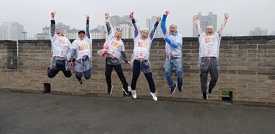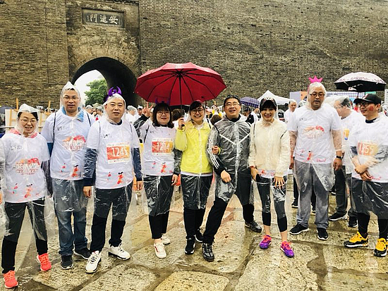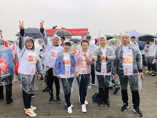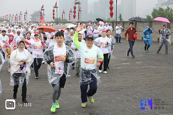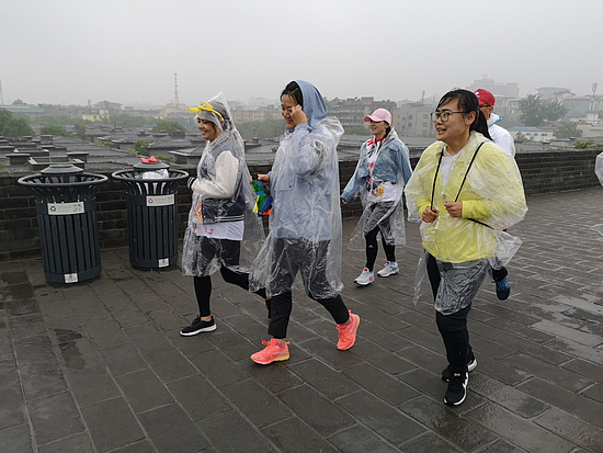 虽然当天的降水天气突如其来,但雨水和降温并没有影响西咸新区扶贫干部们的热情,大家冒雨在清晨集结,在雨中你追我赶,在13.7公里的城墙跑道上挥洒激情。