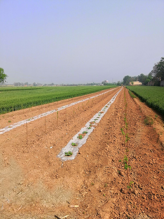 高庄镇王家堡村贫困户张吉良种植柏树、大叶女贞、桃树、核桃树等苗木和经济作物