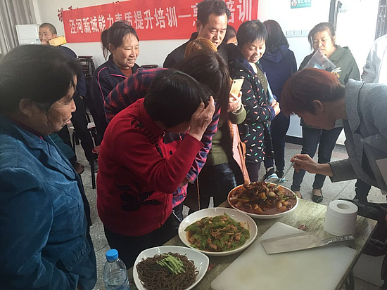 自2019年3月起,泾河新城扶贫办就联同现身蓝软件开发实践培训中心,通过邀请专业的培训老师,举办泾河新城能力素质提升培训班,第一期主要是针对如何开办好农家乐对有意向的贫困群众进行全方位培训,今天开班的是能力素质提升第二期培训班——烹饪培训。培训地点分别设在永乐镇永乐村和泾干街道姚坊村村委会,一大早“教室”内就挤满了前来学习厨艺的贫困群众和村民,因为空间有限,很多村民干脆站在外围探着头踮起脚尖学,个个热情高涨,据了解共有100余名贫困群众、已脱贫户和村民参加了此次培训。