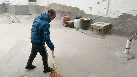 2018年的某一天傍晚,韩五奎像往常一样来到他工作的地方开始清扫院落。这份看管养鸡场的工作是帮扶干部和村干部的帮他联系的。虽然工资不高,但是每月至少有一份稳定的收入。他虽然天生智力弱于常人,但是工作以来,他一直勤勤恳恳做足本分,养鸡场的老板对他评价一直很高,称他为让人放心的“老哥”。