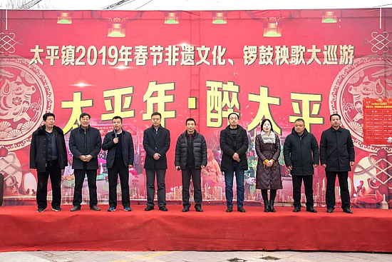 1月28日上午,太平镇“热闹太平”,2019非遗文化、锣鼓秧歌大巡游启动仪式在锣鼓喧天声中正式举行。