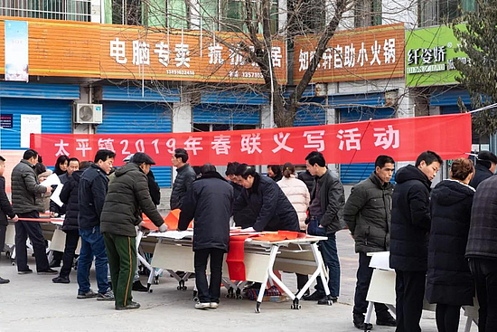 “书香太平”,2019春联义写活动场面热闹,来自全镇的十余名书法爱好者以字传意,为全镇人民送去新春祝福。