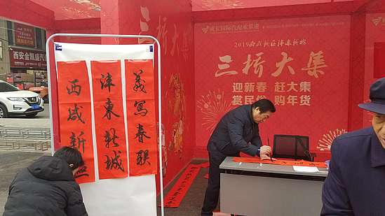 “劲松挺秀翠撒致富路,疏柳摇风绿遍小康家”、“大好河山施善政、小康岁月涌春潮”……一幅幅春联写满了对美好生活的礼赞;《扶贫轶事》《夸陕西赞新城》《就恋这把土》等新区原创节目也赢得了一个又一个满堂彩,尤其是老陕人最爱秦腔专场演出,汇集了西咸新区的众多“名角儿”,将现场氛围推向了高潮,参观群众纷纷表示,现场活动异彩纷呈,在大集上感受到了浓浓的年味儿!