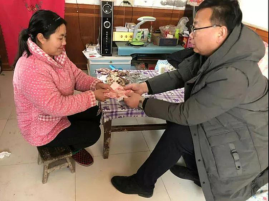 帮扶老师把贫困补助金各1000元交到贫困户手中,详细询问了学生学习生活方面的困难,表示会加大教育扶贫力度,不让孩子掉队。