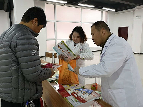 给群众发放宣传资料,与贫困群众进行面对面,一对一的健康知识讲解,提升群众满意度。