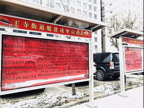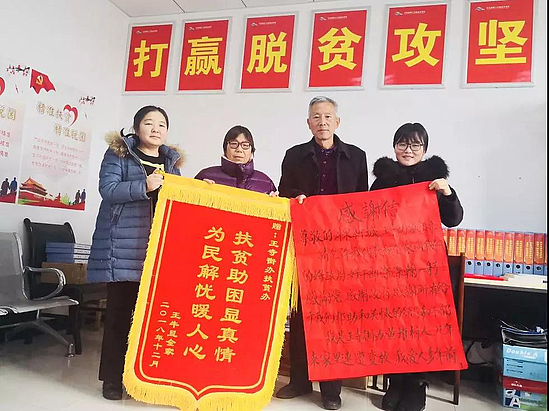 12月28日,王寺街道黄堆潭村已脱贫户王牛旦的妻子张先芳把写有“扶贫助困显真情 为民解忧暖人心”的锦旗以及感谢信送到王寺街道脱贫攻坚工作分管领导手中,感谢党和政府对贫困户的关心与帮扶。