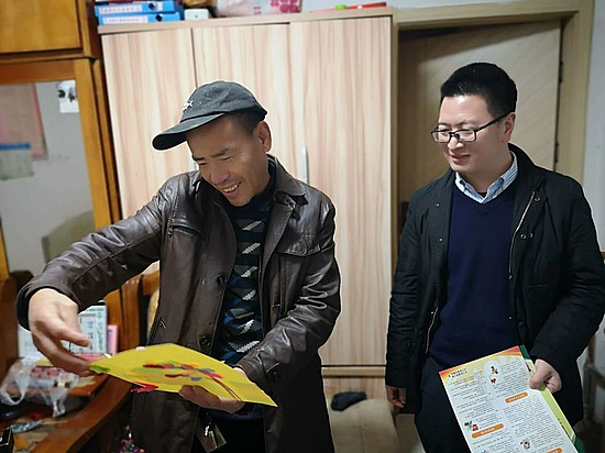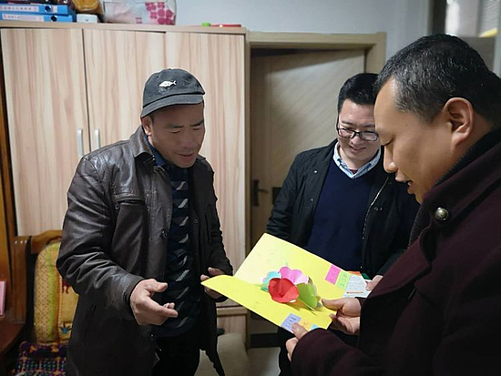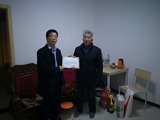 为贫困户送去米、面、油、牛奶等慰问品,并为贫困户送上节日祝福的新年贺卡。