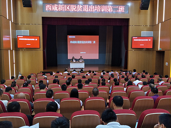 此次培训内容丰富,针对性、实用性强。培训为期五天,在各新城巡回授课。采取集中授课、专题讨论交流相结合的方式,重点讲授习近平总书记脱贫攻坚思想理论体系、当前陕西脱贫攻坚形势分析及其未来脱贫攻坚工作的发展方向,详解《陕西省脱贫退出工作导引》、《实施细则》、《西安市计划脱贫工作的实施意见》、《西咸新区脱贫退出实施方案》等,共培训新区扶贫系统干部896人。