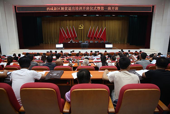 西咸新区围绕组织镇街、村干部专题学习精准扶贫精准脱贫工作方法,提高工作实效,组织脱贫退出培训班。培训为期五天,在各新城巡回授课。采取集中授课、专题讨论交流相结合的方式,重点讲授当前陕西脱贫攻坚形势分析及其未来脱贫攻坚工作的发展方向,详解《陕西省脱贫退出工作导引》、《实施细则》、《西安市计划脱贫工作的实施意见》、《西咸新区脱贫退出实施方案》等。