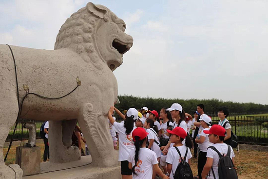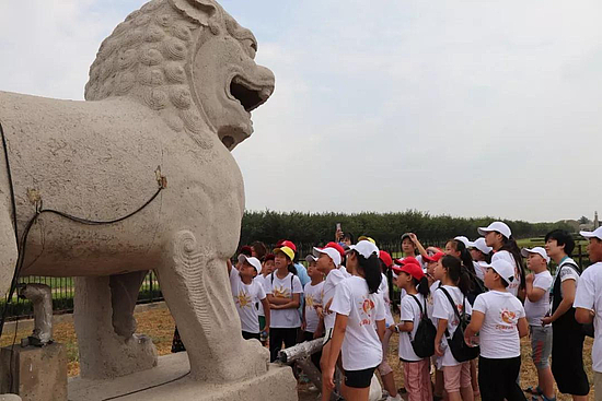 最后一站,孩子们来到全国重点文物保护单位——顺陵,经历了一场文化体验之旅。孩子们走进陵园,讲解员结合一个个生动的历史故事,带领大家参观了华表、走狮、天禄等珍贵历史文物,了解了唐朝文化发展。孩子们争先恐后的提问,体现了对历史知识的浓厚兴趣,也打动了工作人员。在得到允许后,大家幸运的与文物古迹进行了一次“亲密接触”。