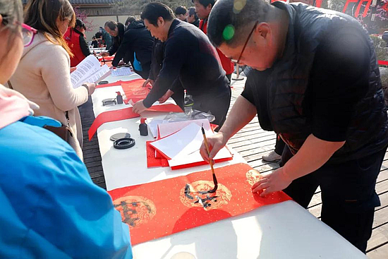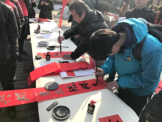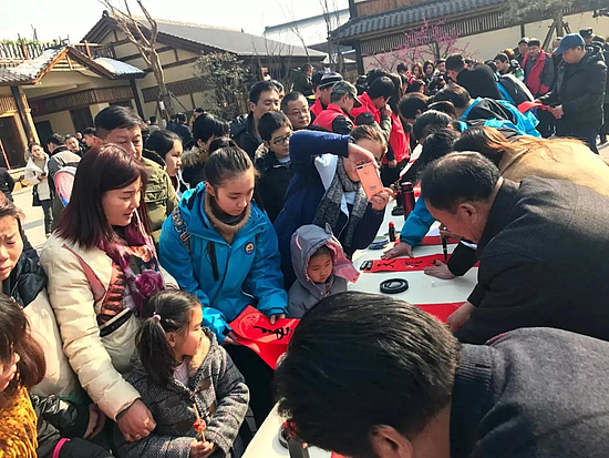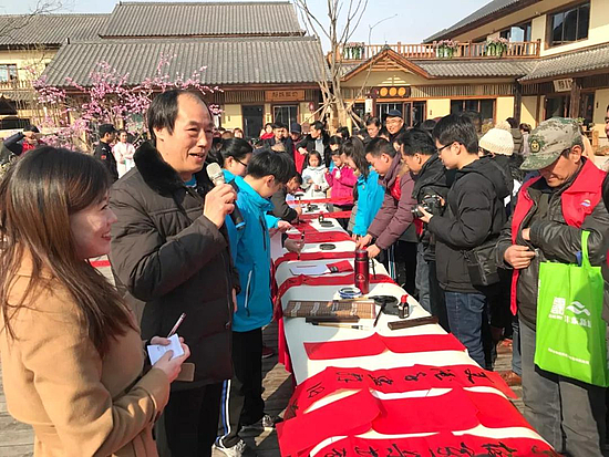 2月6日下午,由西咸新区文明办、扶贫办主办,沣东新城文明办联合相关部门共同承办的“我们的节日·春节——挥笔洒墨 展我风采 助力脱贫攻坚”主题活动在沣滨水镇·诗经里举行。