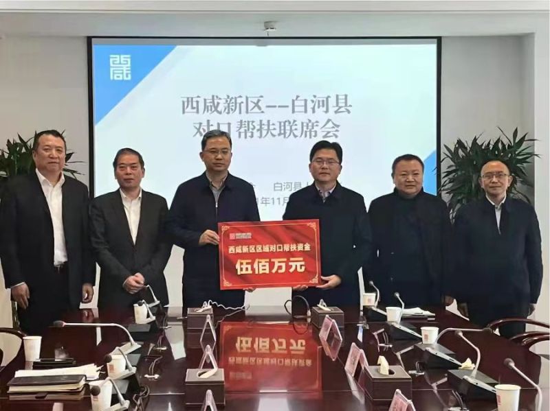 张渭代表新区党工委、管委会欢迎李全成书记一行的到来。他表示,回顾合作历程,西咸新区坚决扛起帮扶责任,聚焦白河人民所需,开展了多形式、多层次、多领域的协作,累计拨付帮扶资金1020万元,为白河县脱贫摘帽贡献了西咸力量。与此同时,西咸新区也充分学习借鉴了白河县的“三苦”精神和经验做法,扎实推动各项工作迈上新台阶。下一步,西咸新区将从三个方面做好帮扶工作:进一步加大资金支持、劳务协作、教育帮扶、消费帮扶、产业合作力度,确保高质量完成对口帮扶任务;动员全区的各个单位和社会力量购买白河扶贫产品,助力白河县巩固拓展脱贫攻坚成果同乡村振兴有效衔接;欢迎白河县领导同事常来新区考察指导,促进深化合作,推动白河县科技创新、农业产业等领域优质项目与秦创原创新驱动平台总窗口紧密衔接。