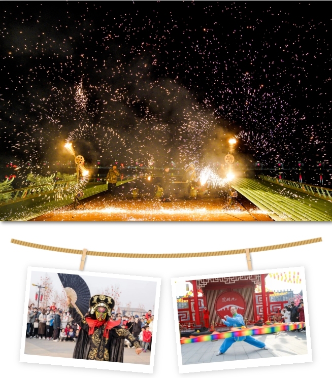在昆明池的非遗表演大集上,游客将会欣赏传统顶缸、空竹等传统非遗技艺,以及变脸、喷火等非遗民俗表演,绚烂的打铁花搭配国风舞蹈,感受古老与现代的交织、充满惊喜的新年盛宴。乐华恒业欢乐世界主题乐园也将带来非遗火壶大秀、篝火巡游等,展现浓浓年味。