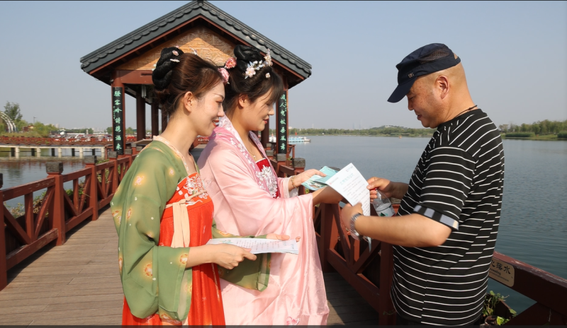 “线上+线下”增强游客观赏体验感,提升景区文明服务质量水平。景区运用公众号、微博等线上平台,推出射箭、摇橹船、汉服体验等预订套餐,在公众微信号平台嵌入“全景导览”功能,让游客第一时间了解景区信息,在线畅玩。