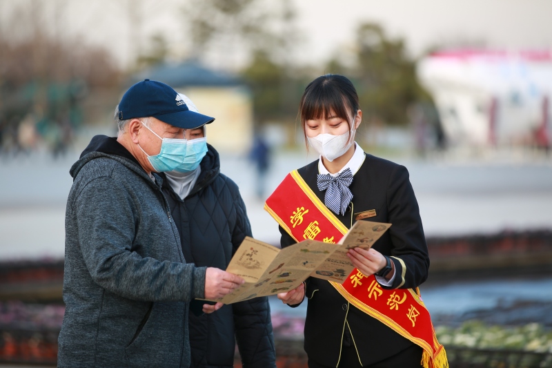 “在提升服务质量方面,我们在景区游客量较大场所和游客集散地,安排人员向游客发放文明旅游、垃圾分类、‘提倡节约、反对浪费’等主题宣传单页,引导游客争做文明旅游的实践者、传播者。”景区相关负责人介绍。