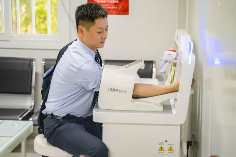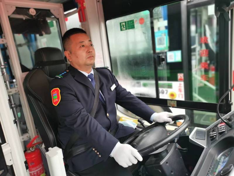 黄争武是当班车车长,也是1141路线路长,冬季行车责任重大,每天发车前司机们总是再三检查——玻璃、胎压、电瓶一个也不能漏掉。车长检查完车辆,紧接着是对人的身体进行检测,酒精测试、发烧测试、血压测试,车与人每一项检测完都要拍照上报安全监管系统。“您血压三次检测平均值高压126,低压91”随着仪器语音播报结束,黄争武完成了发车前“三检三测”,发车上路。
