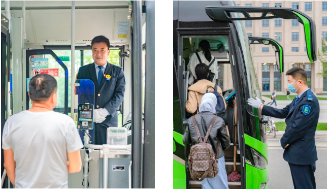 “你好,欢迎乘坐1141路公交车。”“首站迎客制”是西咸公交特色,无论谁作为当班车长,第一站上车前,都会站着欢迎笑脸问候。每天不论谁当车长,前三车次的乘客几乎都是前往渭柳中学上学的孩子们。