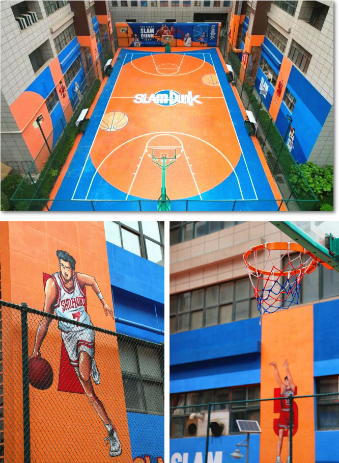位于西咸新区沣东新城协同创新港2号楼西侧的篮球场,近日完成升级改造。场馆内完整的围栏、崭新的篮网、平整的地面、黄蓝相间的配色,手绘的动漫人物,最适合拿起篮球约上好友,一起释放运动激情。
