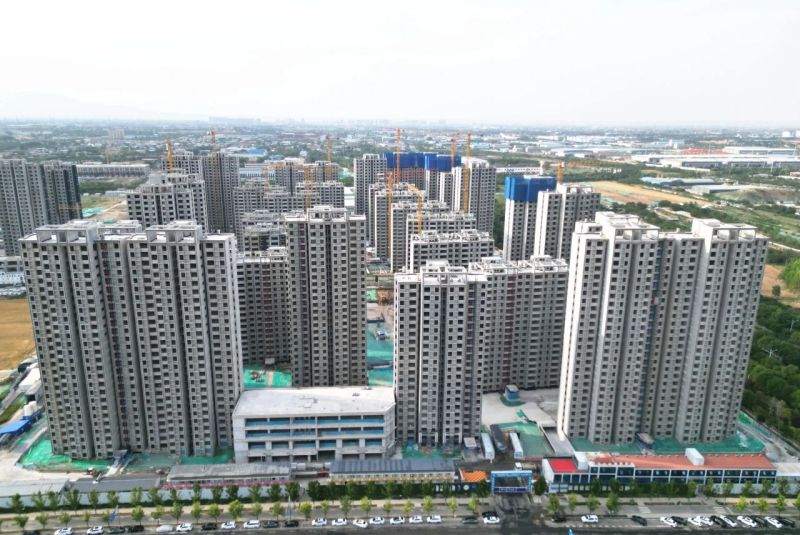 一期项目总用地约73.42亩,配建有商业、幼儿园、公共服务设施等。截至目前,项目9栋住宅楼主体全面封顶,外立面保温施工完成55%,窗框完成65%,室外回填土完成95%。