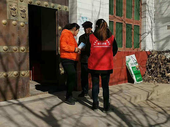 (金蓓蕾志愿服务者,向村民们认真讲解,得到村民的赞赏)