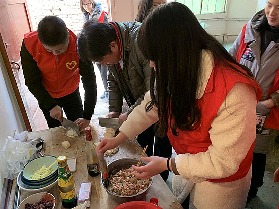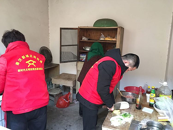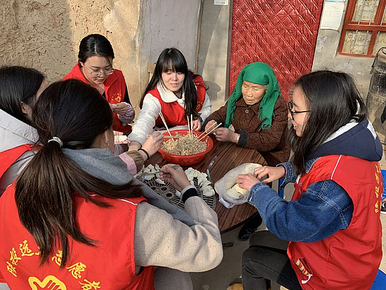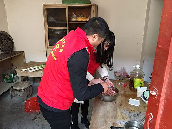 19日一早,街道志愿者们早早买好了食材,带着东西来到张家湾村80岁贫困户家段孟兰家中,一边包水饺清扫院子,一边聊家常。听说街道志愿者来为贫困户包水饺,村里的其他几家村民都来帮忙,支起大锅,烧上水。不一会儿热腾腾的水饺就端上了桌。“味道真不赖!”几位阿姨连声对志愿者们表示感谢。