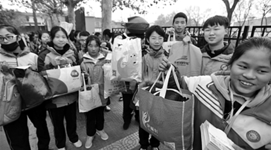 得知本报2019暖冬行动在该校设立公益集市分会场,“门卫哥”冯涛匆匆赶来,手里拿着新买的20本书,《格林童话》《爱的教育》《朝花夕拾》《在人间》等。“我在北郊,坐公交车赶来,尽一点微薄之力,希望把这些书捐给山区的孩子,希望他们多读书,读好书,长大后传递正能量!”冯涛说。