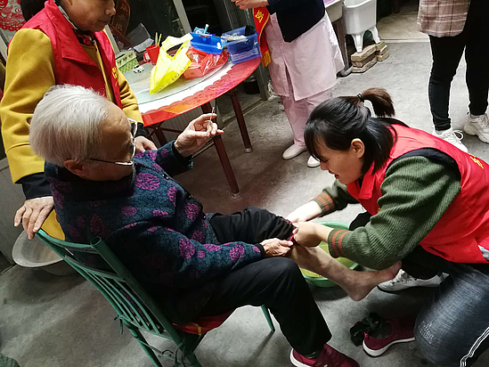不忘初心、牢记使命,永乐社区关爱老人在行动。为了给永乐辖区创建一个敬老、爱老、养老、助老的氛围,2019年10月31日泾河新城人社民政局组织永乐社区居民委员会及乐活社会组织、永安医院、专业理发师、专业修脚师等志愿者10余人,共同为永乐辖区残疾老人、低保户、孤寡老人入户到家测量血压、血糖,修脚,理发,按摩,陪伴老人拉家常等关爱服务。