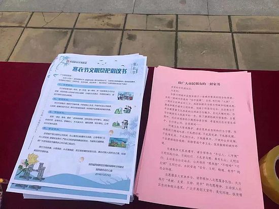 工作人员与志愿者为前来参加活动的群众发放了市文明委的《致广大市民朋友的一封信》和《寒衣节文明祭祀倡议书》,宣传寒衣节来历与文明祭祀意义,动员大家用文明的方式纪念故人,并引导群众将对故去亲人的哀思写在留言板上。现场还为孩子们送上了气球、给大人分发了小雏菊等花束,倡导大家献花寄哀思,文明祭祀。