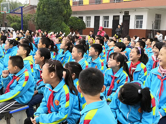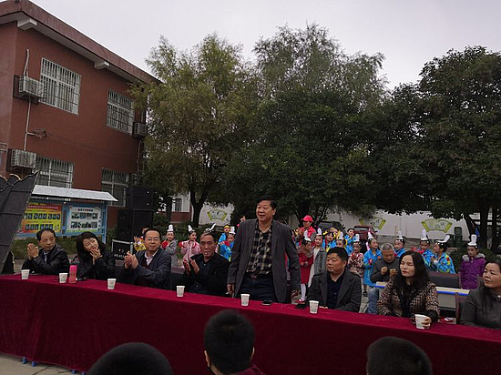 全体师生在教学楼前集中,列席的嘉宾有新城宣传部人员、街办领导、学区领导、学校辖区各村干部等。