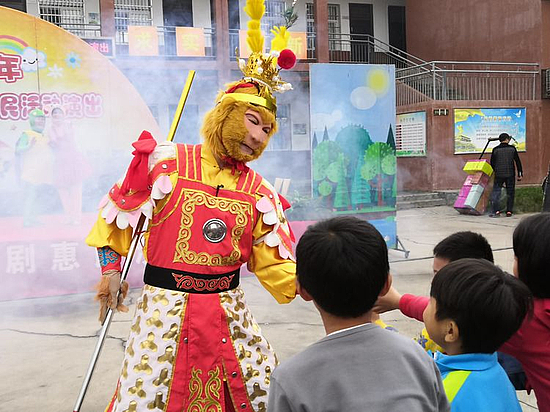 (西安儿艺带来的《小猴聪聪》正在表演中)
