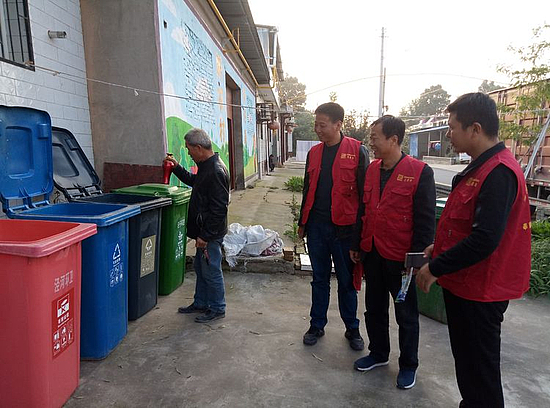 2019年10月5日木刘村党支部组织三委会全体成员以及保洁员和志愿者召开10月份“垃圾分类”宣传活动。