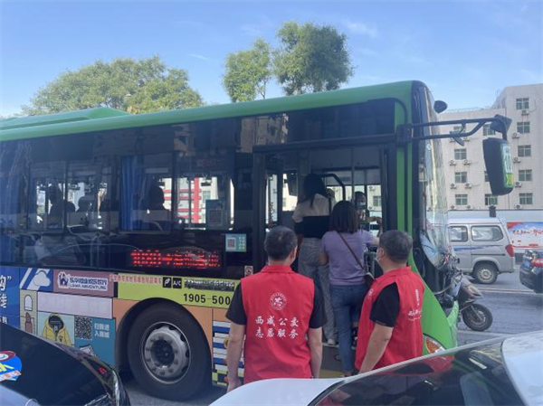 西咸公交组织党员志愿者前往高考考点学校门口和考点附近主要干道和站台,现场指挥、疏导车辆,为考生引路指路,并提醒过往车辆和行人保持考点周边安静。