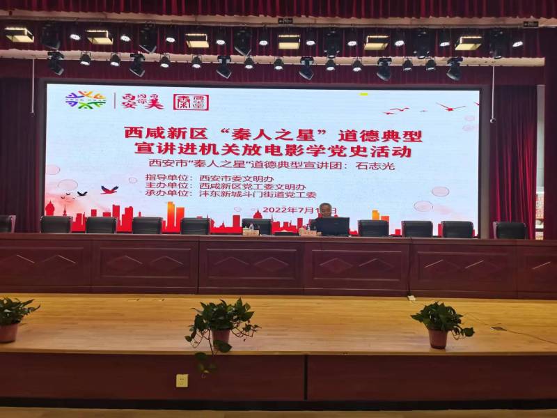 7月20日,西安市“秦人之星”道德典型宣讲团成员、西咸新区“秦人之星”道德典型宣讲团团长石志光在斗门街道道德讲堂上进行宣讲,并播放电影《勇士》,为街道机关党员们带来了一堂生动的党史课。