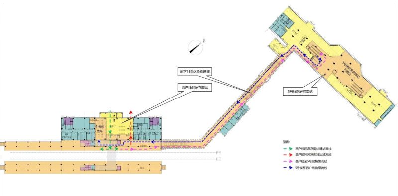 西户线连接地铁5号线阿房宫南站地下换乘通道,日前建设完成,将于9月26日正式投入使用。