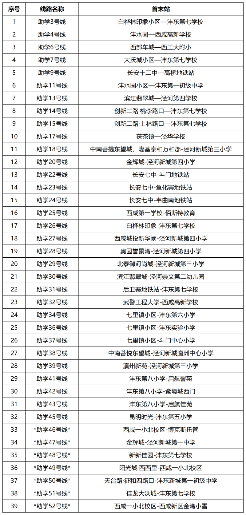 为方便学生上下学出行,解决家长接送难题,近日,西咸公交集团新增开通7条助学专线,并对803路进行延伸优化,具体如下。