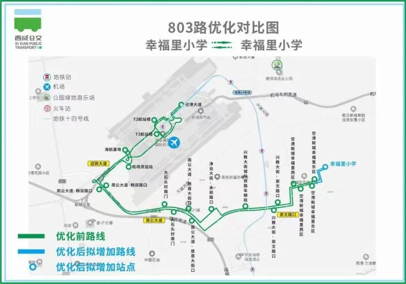 1月1日起,西咸公交集团对803路进行延伸优化,将终点站延伸至“空港幸福里小学”。