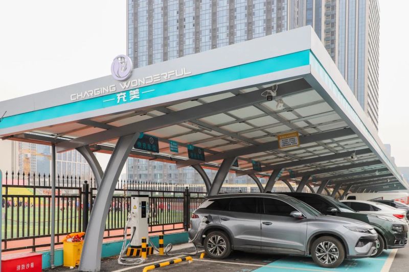 充电站由中建科工集团提供平台+设备+运营+运维+安全整体解决方案,也是西咸新区首个“光储充放检”一体化超充示范站。充电站集光伏、储能、超级充电、V2G和电池检测五大功能于一体,为周边市民游客提供智慧便捷、功能齐全的“超充+”服务。依托物联网、大数据、人工智能与边缘计算等核心技术,为辖区提供新能源充电服务综合解决方案,推动区域城市交通电动化,助力碳达峰、碳中和目标的实现。