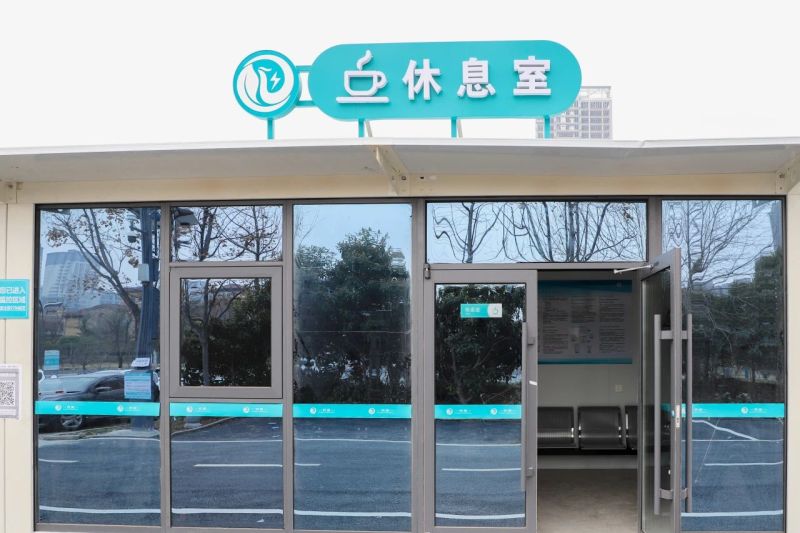 充电站内配有休息室,座椅、空调、饮水机、充电插座等设施一应俱全,满足了客户在等待充电期间的基础需求。旁边还配有便利店,待正式运营后将为客户的休息等待提供更多样的选择。