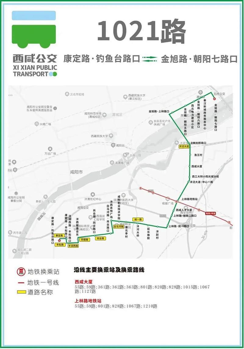 7月30日,西咸公交开通1021路公交车,进一步加强秦汉新城与沣西新城互联互通,接驳地铁1号线,满足沿线群众公交出行需求。