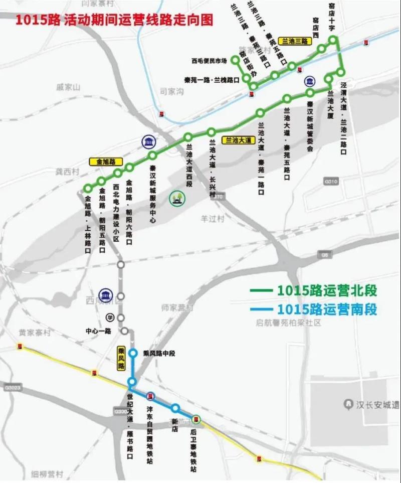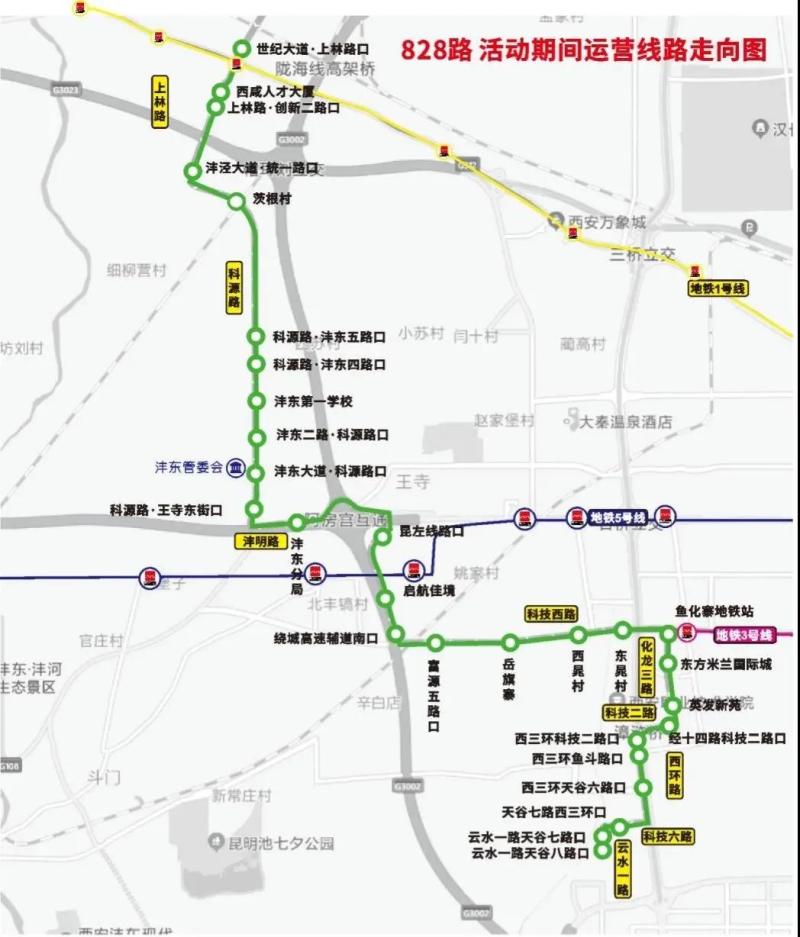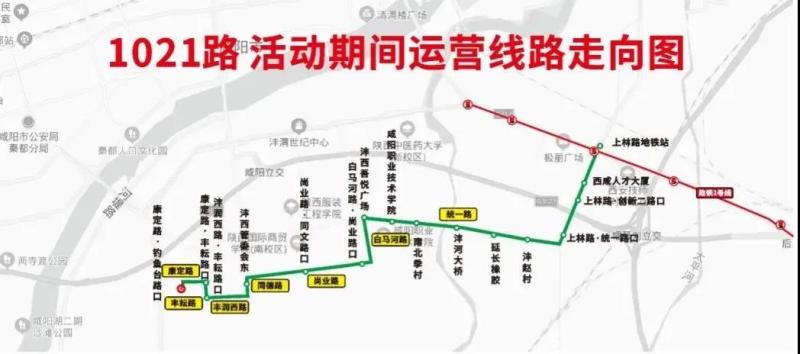 不停靠站点:沣泾大道·中心一路、西工大附小阳光城分校、西咸大厦、渔王村、上林桥南口、金旭路·上林路口、金旭路·朝阳五路口、西北电力建设小区、金旭路·朝阳六路口、秦汉新城政务服务中心、金旭路·朝阳七路口11处站点活动期间不途径停靠。