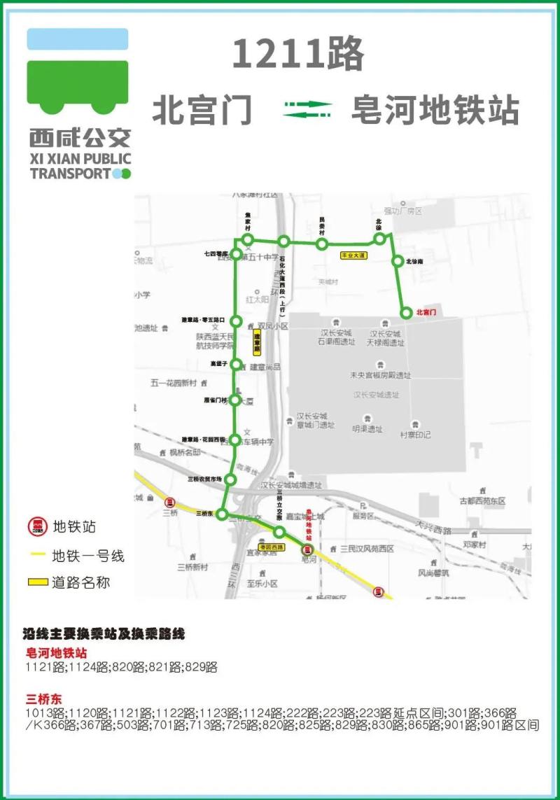为进一步满足新区乘客出行需求,方便沣东新城建章路沿线社区居民前往皂河地铁站方向换乘1号线。11月4日,西咸公交开通1211路常规公交线路。