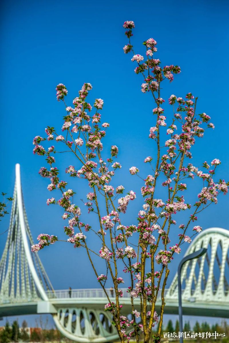 沣渭生态景观区,沣河渭河沿岸花红柳绿碧波荡漾,沿着“三河一山”绿道慢跑、散步,可尽享春光美景。沣河交通桥等景观更是拍照打卡的好地方。